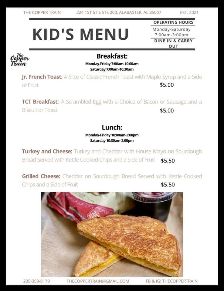 Located in Alabaster, Alabama, The Copper Train is a charming café that offers a delightful array of breakfast and brunch options. Patrons rave about the rich and flavorful coffee, particularly the unique tiramisu latte, which comes paired with a cookie, making it a perfect indulgence. The menu features hearty meals such as the towering biscuit with gravy, paired beautifully with your choice of eggs and bacon or sausage.